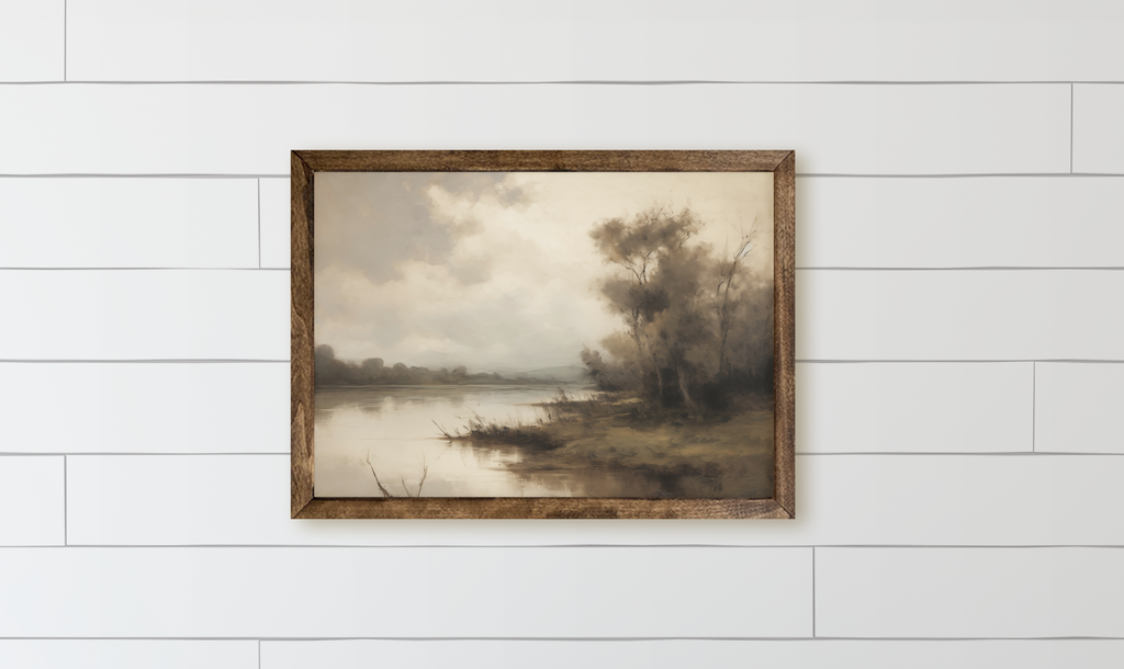 Hazy Lake Wood Framed Sign